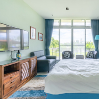 每棟以不同的色調為基調,整片的落地窗,可以看到全部前院或前院的景色,寬闊的視野,房間約22~27平方公尺,乾濕分離的獨立衛浴,舒適的一張六尺獨立筒雙人床,房間有附55吋液晶電視、迷你冰箱,另提供免費的wifi、簡單的茶點,房間皆有附沐浴用品及吹風機。